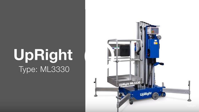 Upright ML3330 er en mastelift fra den verdens kendte producent Instant Upright, det er en let, enkel, robust og kompakt skub rundt lift, der er udrustet med alt hvad der er nødvendigt for at udføre generelt vedligeholdelsesarbejde.